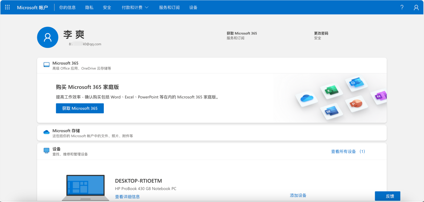 步骤一:点击我的微软账号