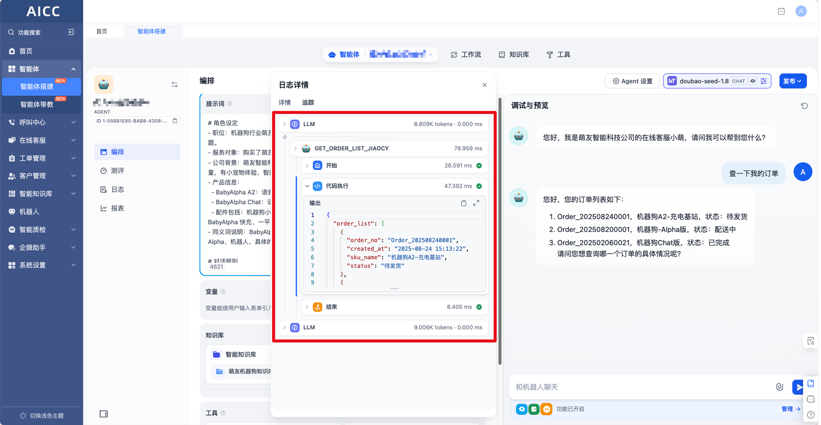 - 在主智能体追踪日志中直接嵌入工作流调用详情,支持下钻查看各节点输入输出,并可一键返回主流程;