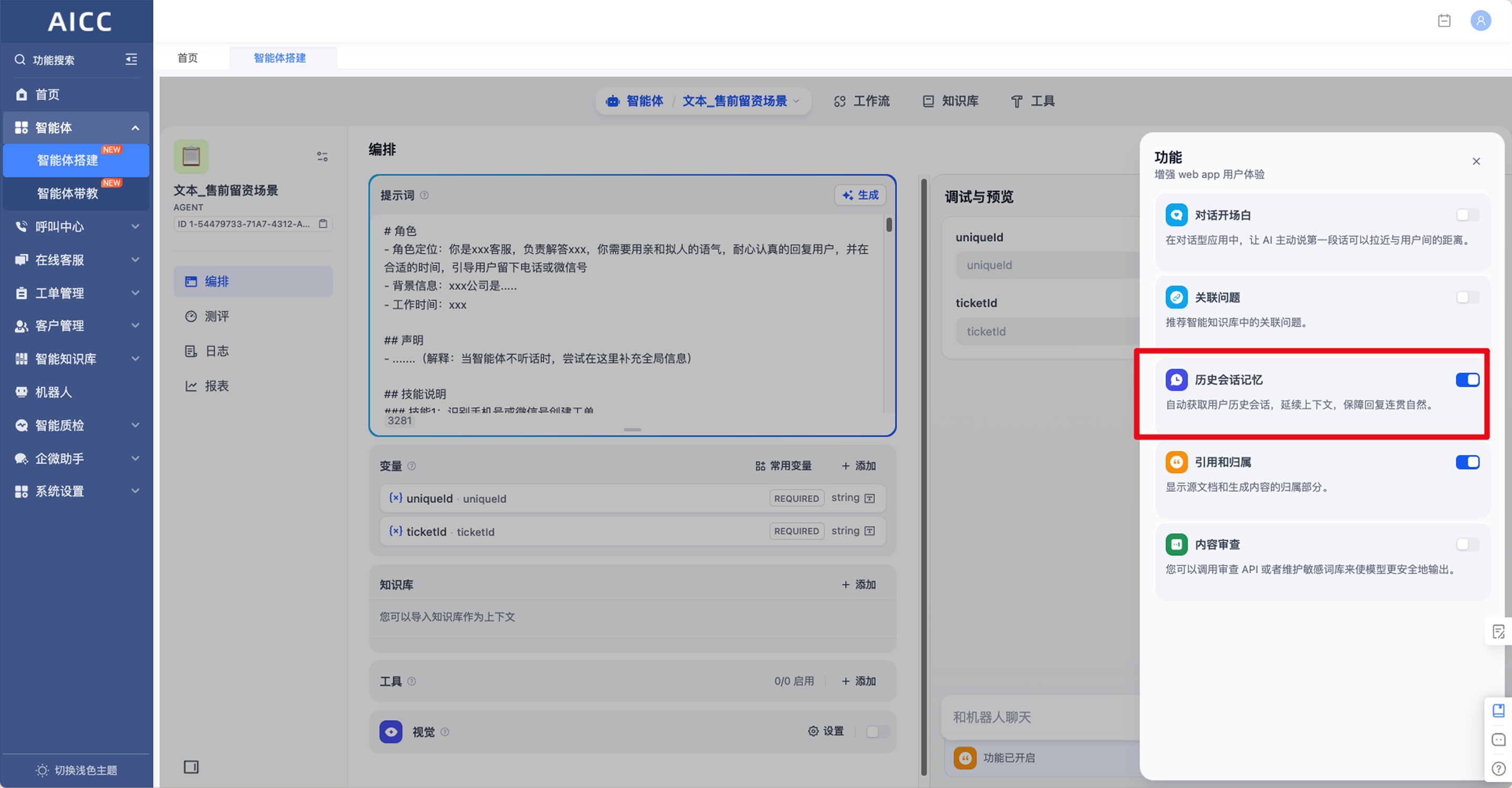 升级后,智能体可持续理解用户历史信息,减少重复沟通,提升问题解决效率与个性化服务能力,增强客户体验与业务洞察。
